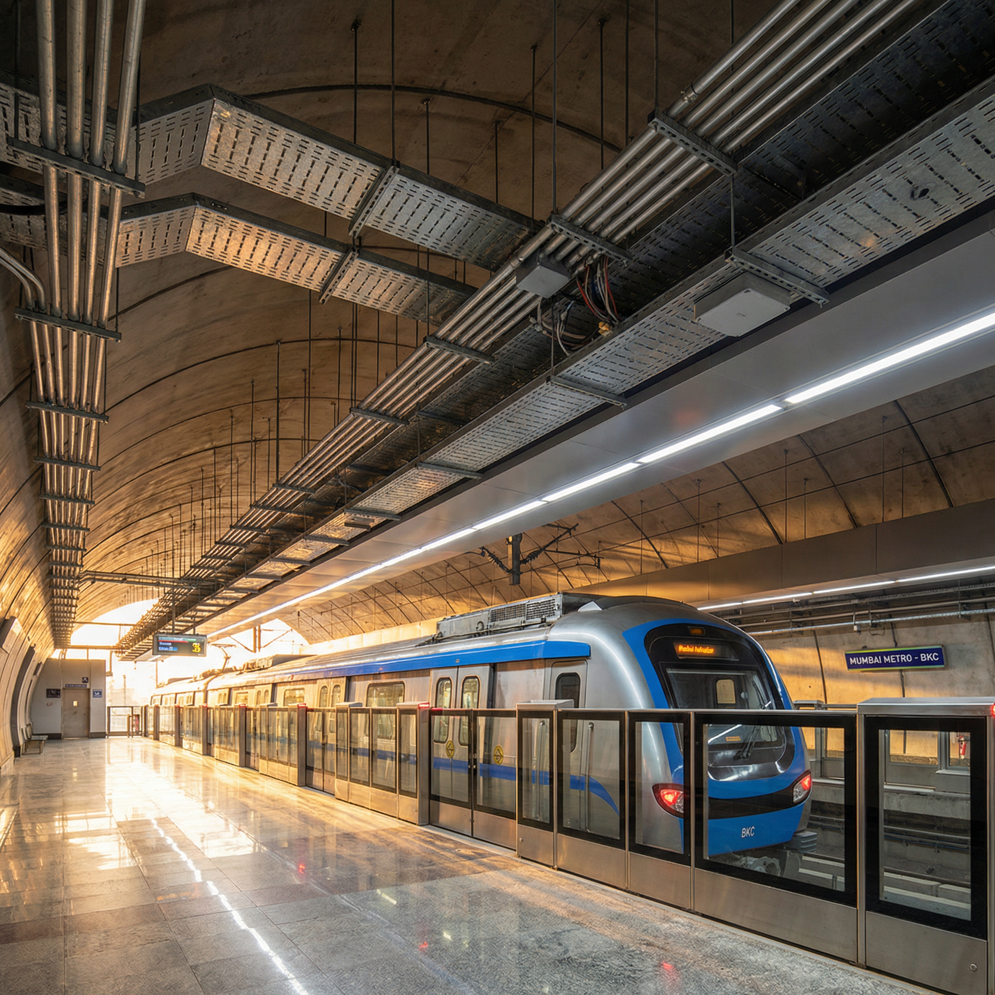 Complete electrical design and installation for India's largest rapid transit network. High-voltage systems, distribution networks, and emergency power systems across multiple stations and depots.